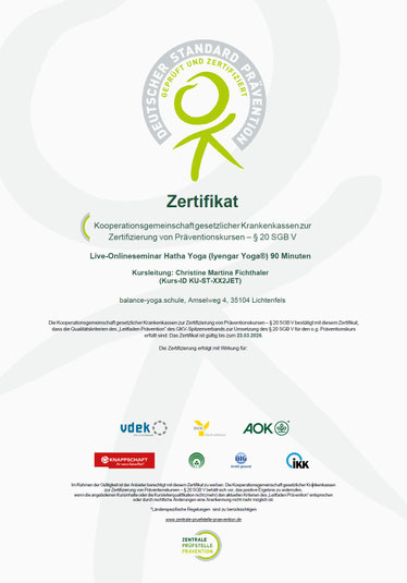 Das Onlineseminar von den Krankenkassen als Präventionsmaßnahme bezuschusst.